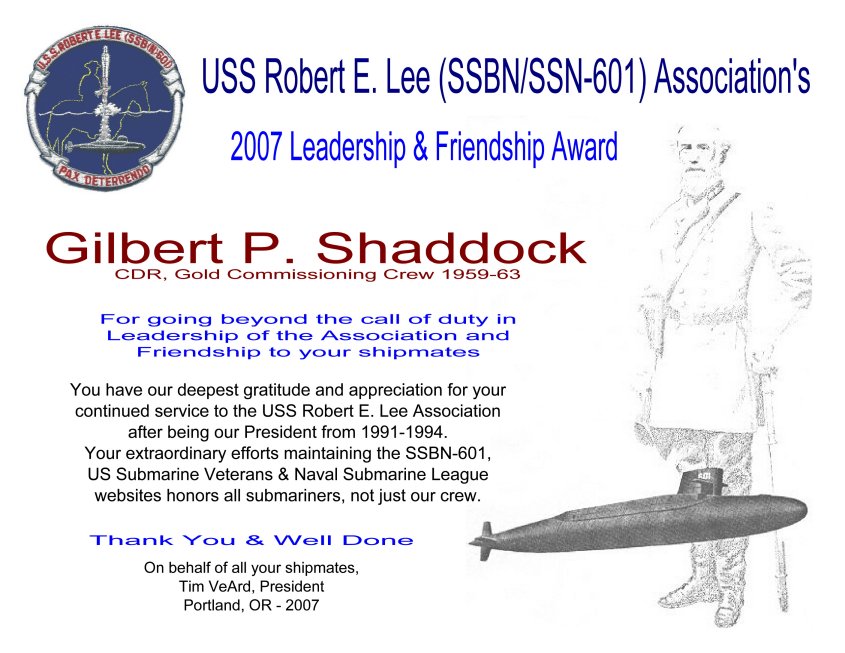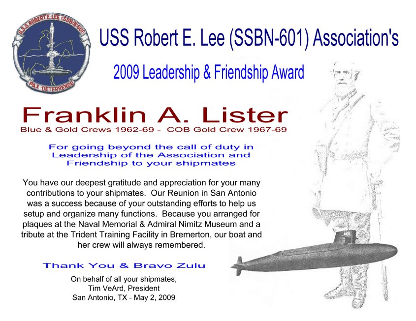 For going beyond the call of duty in Leadership of the Association and Friendship to your shipmates